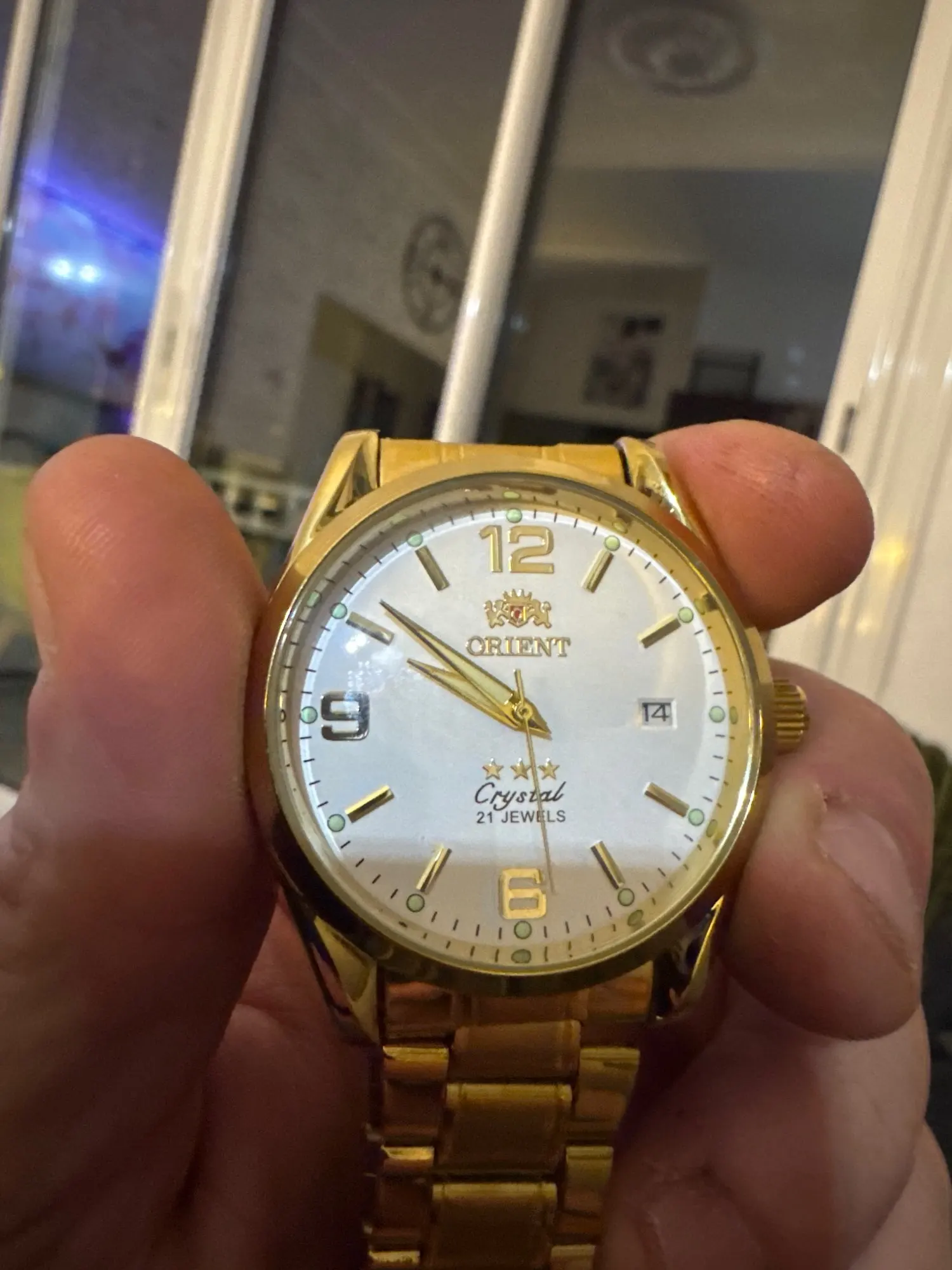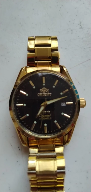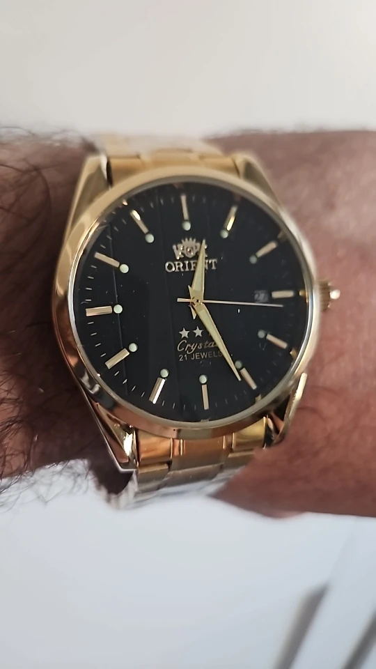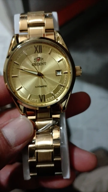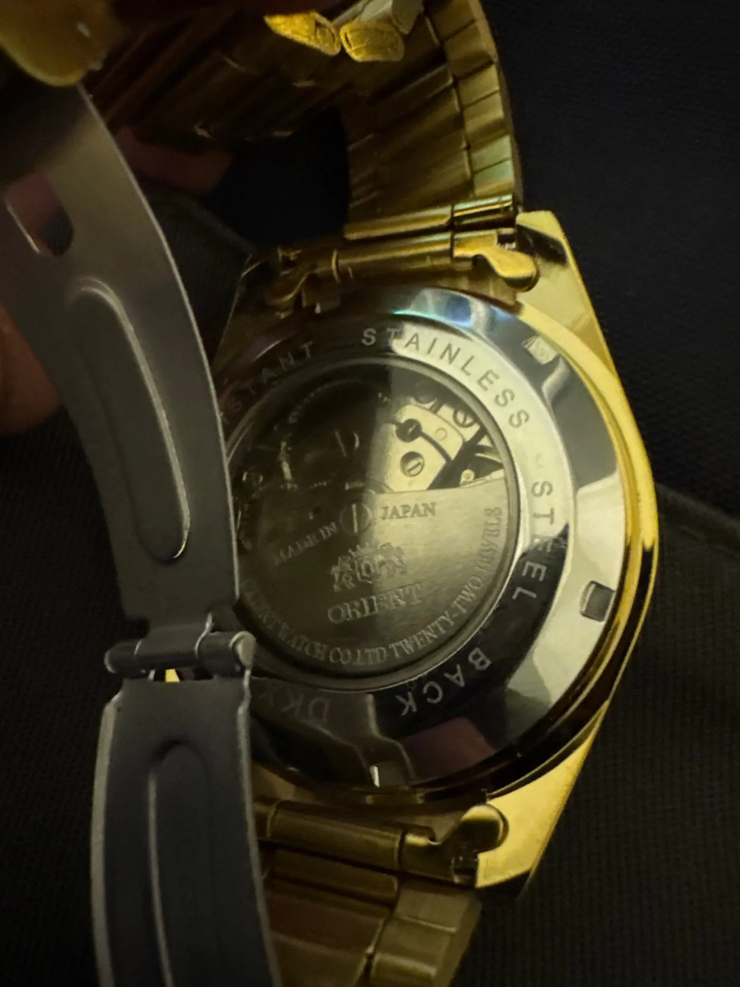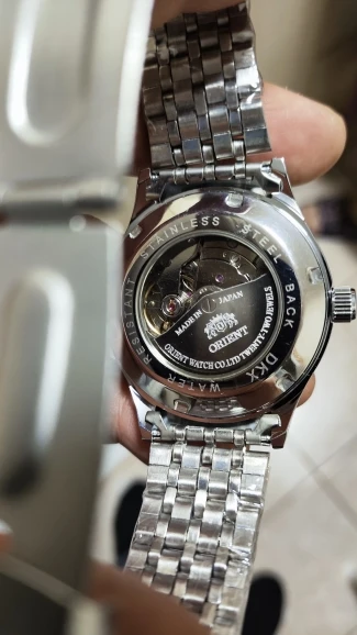 سعيد جدًا بساعة اليد المصنوعة من الفولاذ المقاوم للصدأ المطلي بالذهب من أورينت. ساعة أوتوماتيكية ميكانيكية بتصميم مميز وظهر شفاف لمشاهدة الآليات بدقة. أنيق وراقي للغاية. أعجبني هذا المنتج كثيرًا.