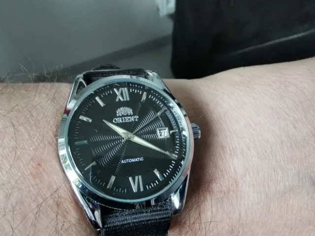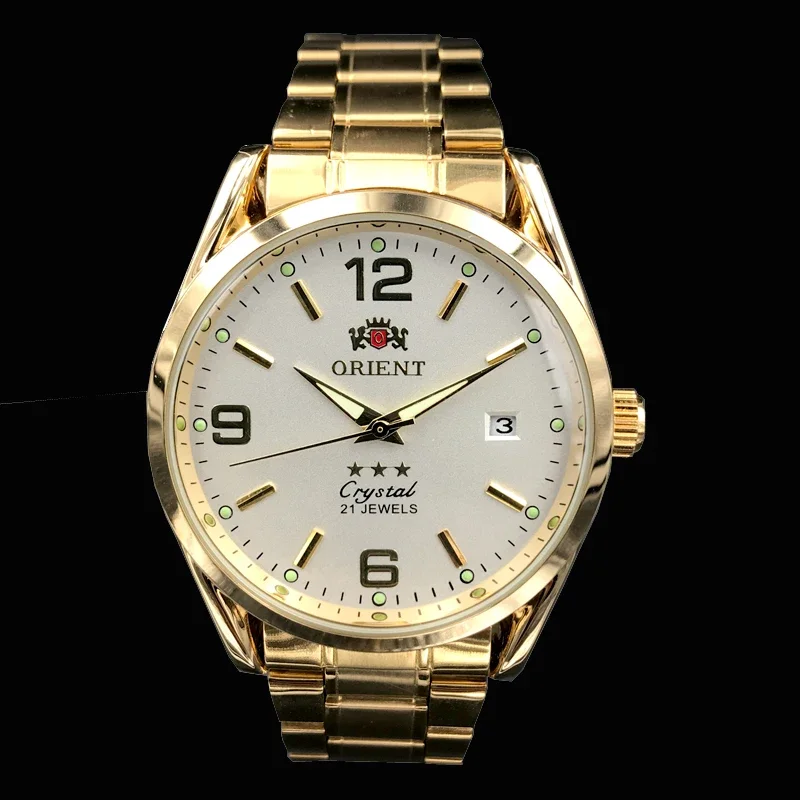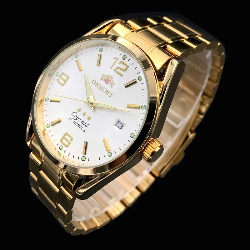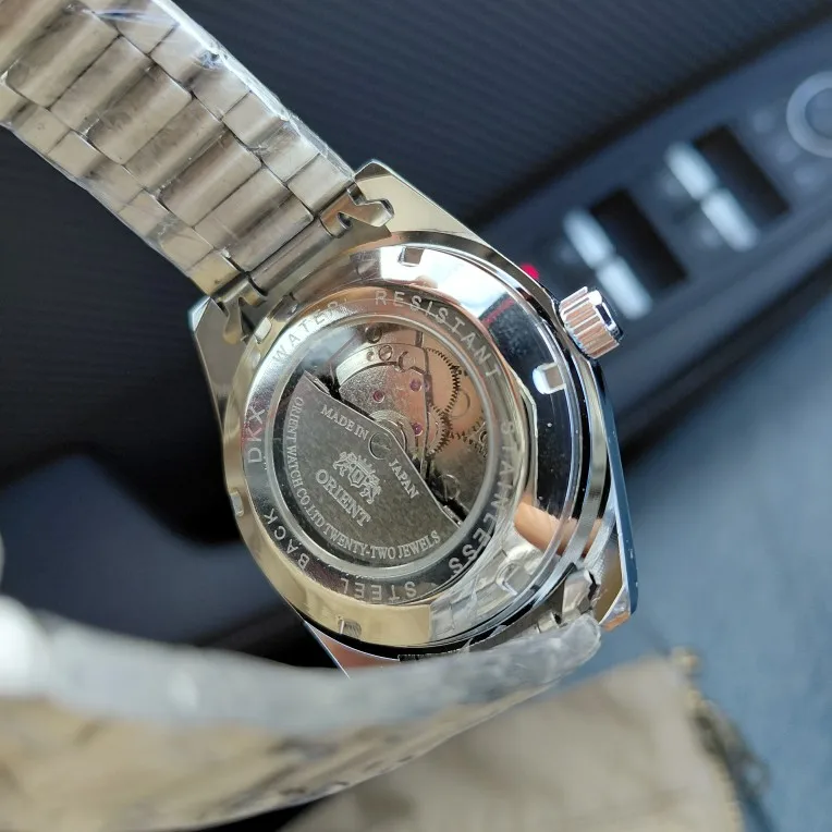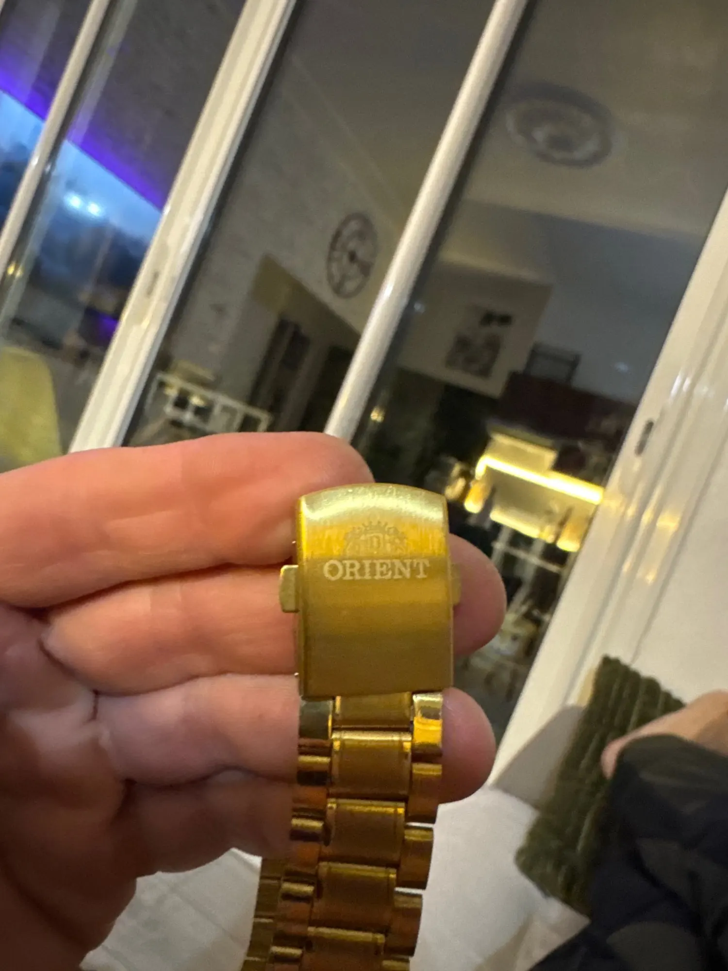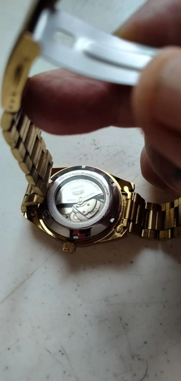 سعيد جدًا بساعة اليد المصنوعة من الفولاذ المقاوم للصدأ المطلي بالذهب من أورينت. ساعة أوتوماتيكية ميكانيكية بتصميم مميز وظهر شفاف لمشاهدة الآليات بدقة. أنيق وراقي للغاية. أعجبني هذا المنتج كثيرًا.