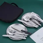 طقم أدوات مائدة للنزهة في الهواء الطلق مع طبق ، ملعقة ، سكين ، شوكة ، أواني طعام للتخييم ، أواني طعام لشريكين