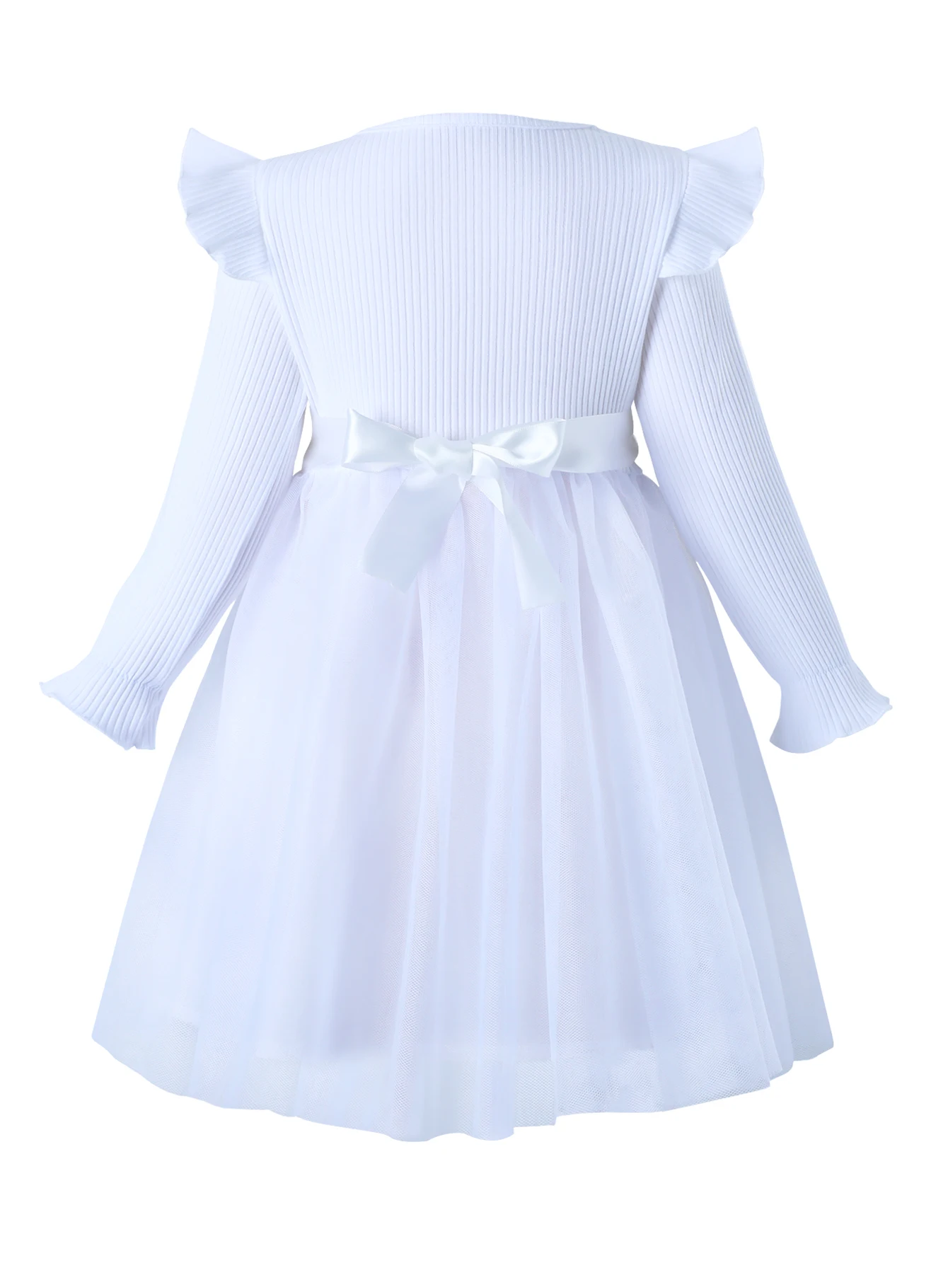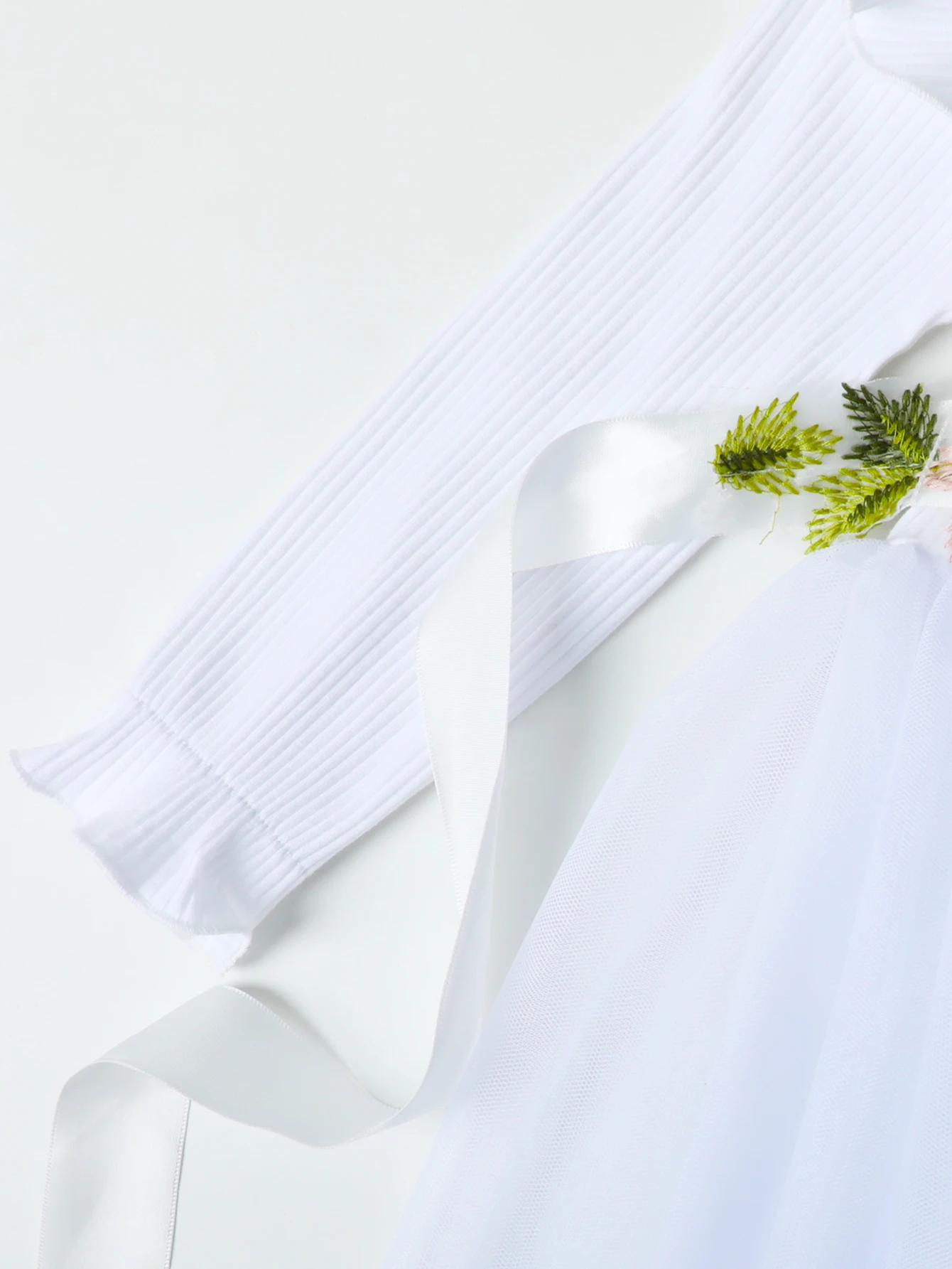 فستان بناتي بأكمام طويلة من التول وحزام على شكل زهرة أنيق كاجوال لربيع الخريف