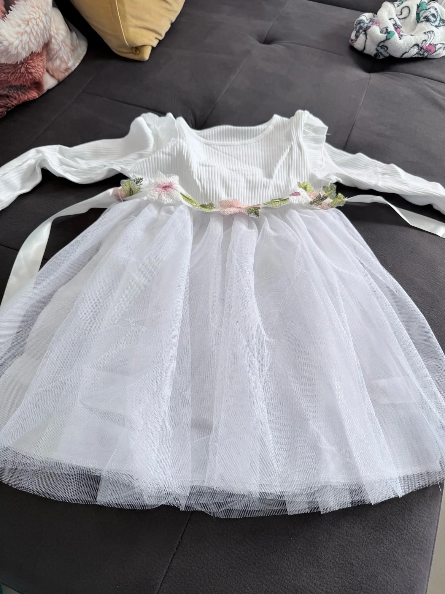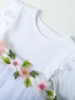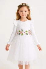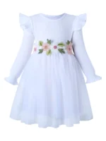 فستان بناتي بأكمام طويلة من التول وحزام على شكل زهرة أنيق كاجوال لربيع الخريف