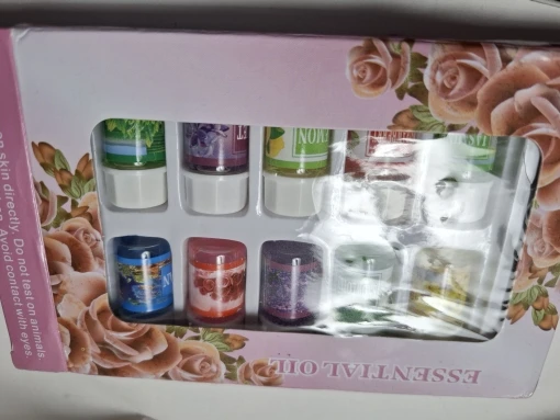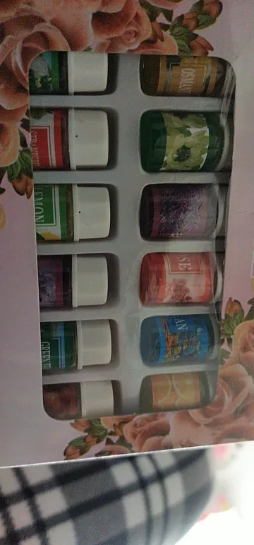 روائح لطيفة وجميلة للغاية. لكن الزجاجات لا تحتوي على قطارات، لذلك عندما نسكب الزيت، ينسكب على اليد وعلى الزجاجة بأكملها. لكنها قيمة جيدة مقابل المال وتشكيلة رائعة من الروائح!