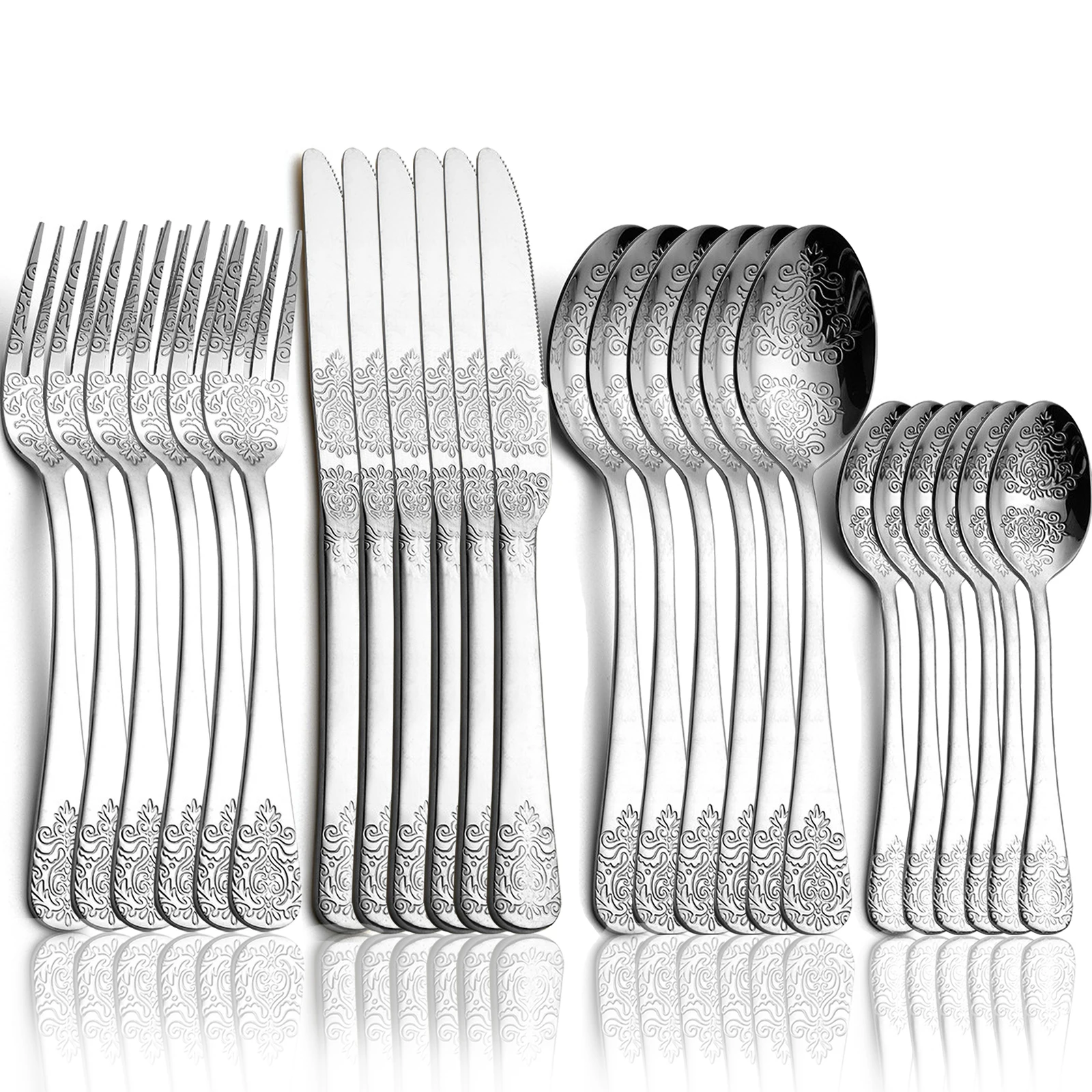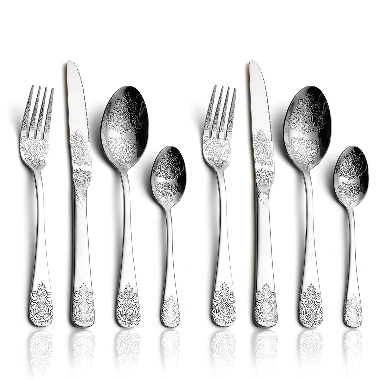 【Unique Pattern Design】 The unique laser pattern engraving on the surface and elegant curve design make cutlery set elegant and delicate, elevating the daily meal into a luxurious dining experience. Classic design of our cutlery set will match well with any existing flatware set.