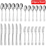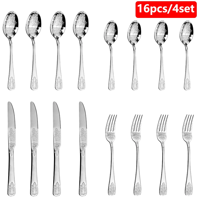 19 مراجعة لـ 16/24 قطعة مجموعة الفضيات ، 304 الفولاذ المقاوم للصدأ الذهب طقم أدوات المائدة مرآة مصقول أطباق مجموعات خمر منحوتة أواني مجموعة أدوات المائدة