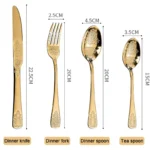 16/24 قطعة مجموعة الفضيات ، 304 الفولاذ المقاوم للصدأ الذهب طقم أدوات المائدة مرآة مصقول أطباق مجموعات خمر منحوتة أواني مجموعة أدوات المائدة