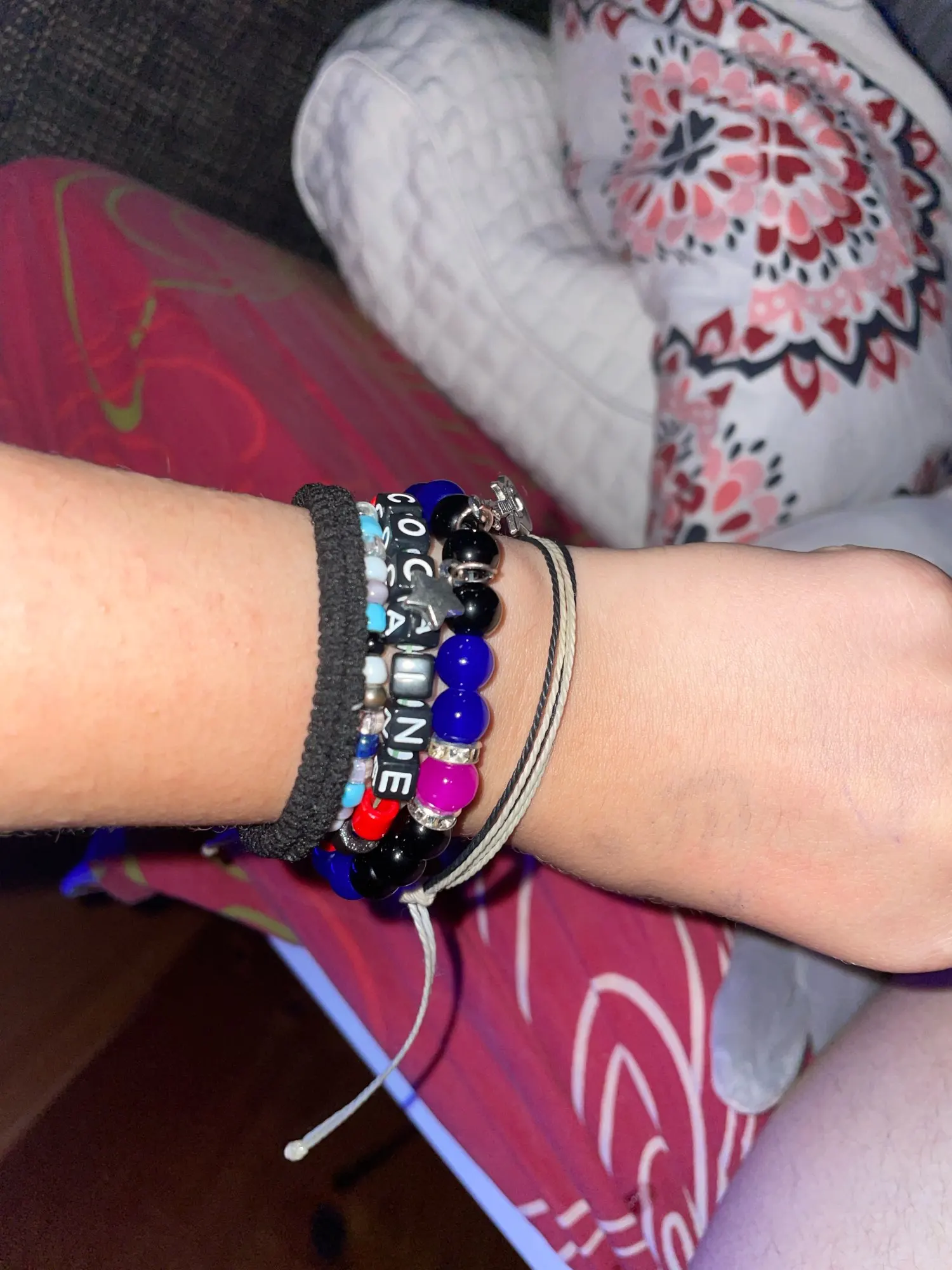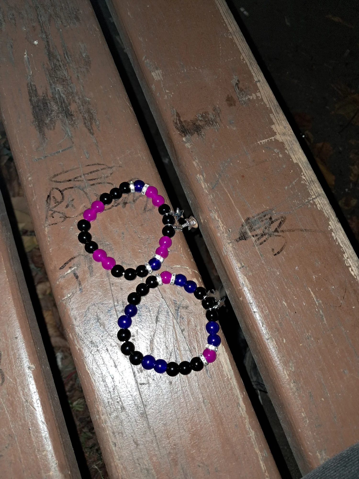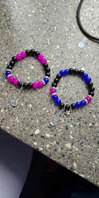 أساور جيدة، لكن الزرقاء انكسرت بسهولة (انكسرت عن طريق الخطأ)، والأخرى الوردية لا تزال سليمة.