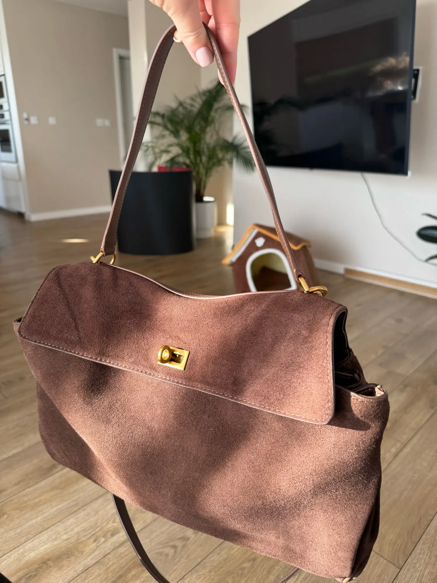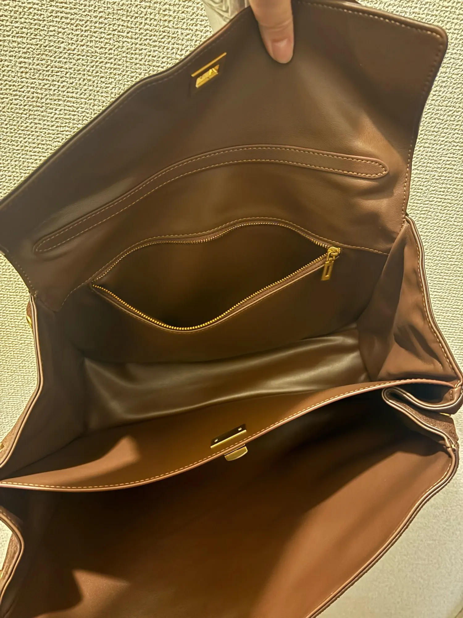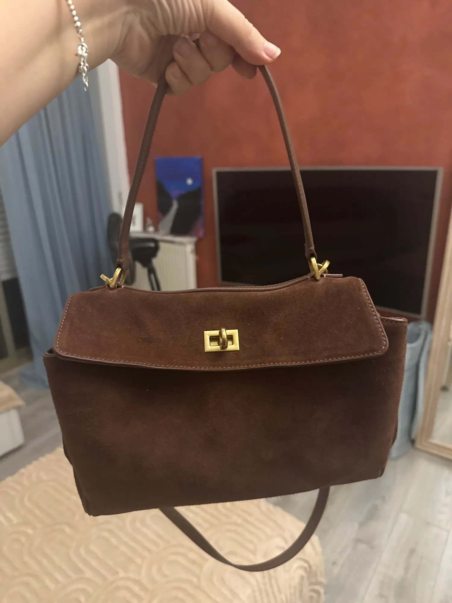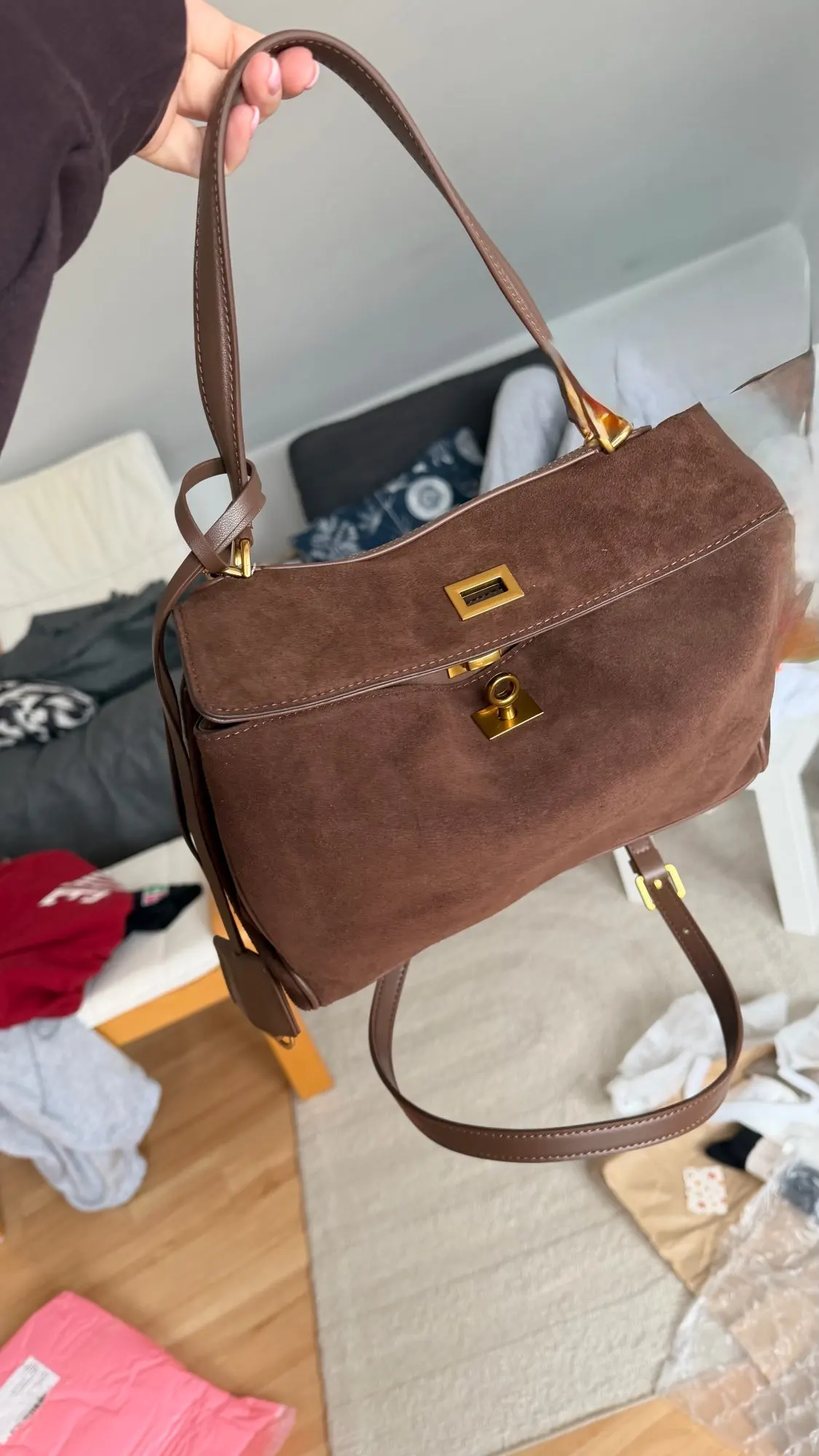 الحقيبة ذات جودة عالية، أنيقة الصنع، ومتقنة التفاصيل. للأسف، اللون لا يطابق الصورة. كنت أرغب في لون بني داكن بارد كما في الصورة، لكن وصلني لونًا دافئًا، وأحمرًا قليلًا. الحقيبة لا تزال جميلة ولونها رائع، لكنها ليست تمامًا كما توقعت بناءً على الصورة.