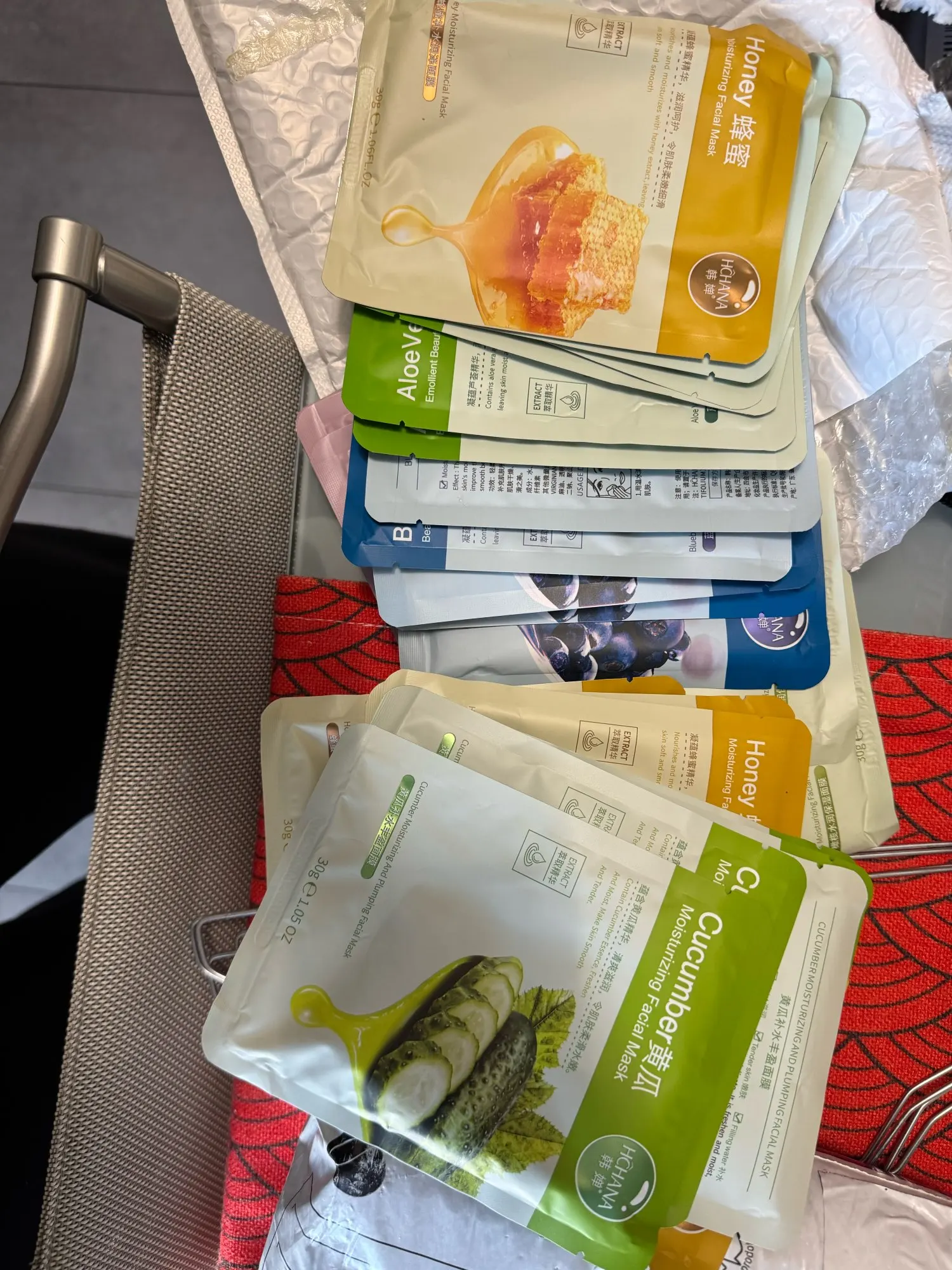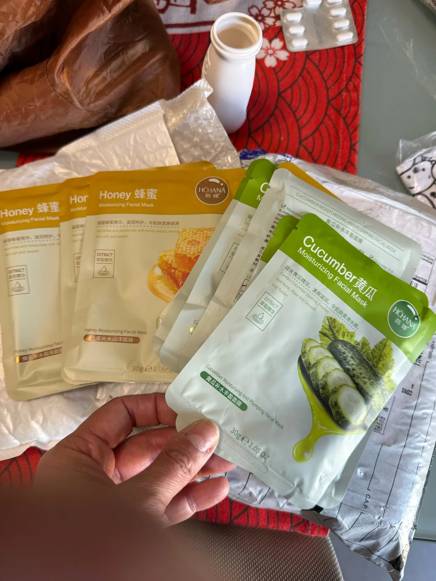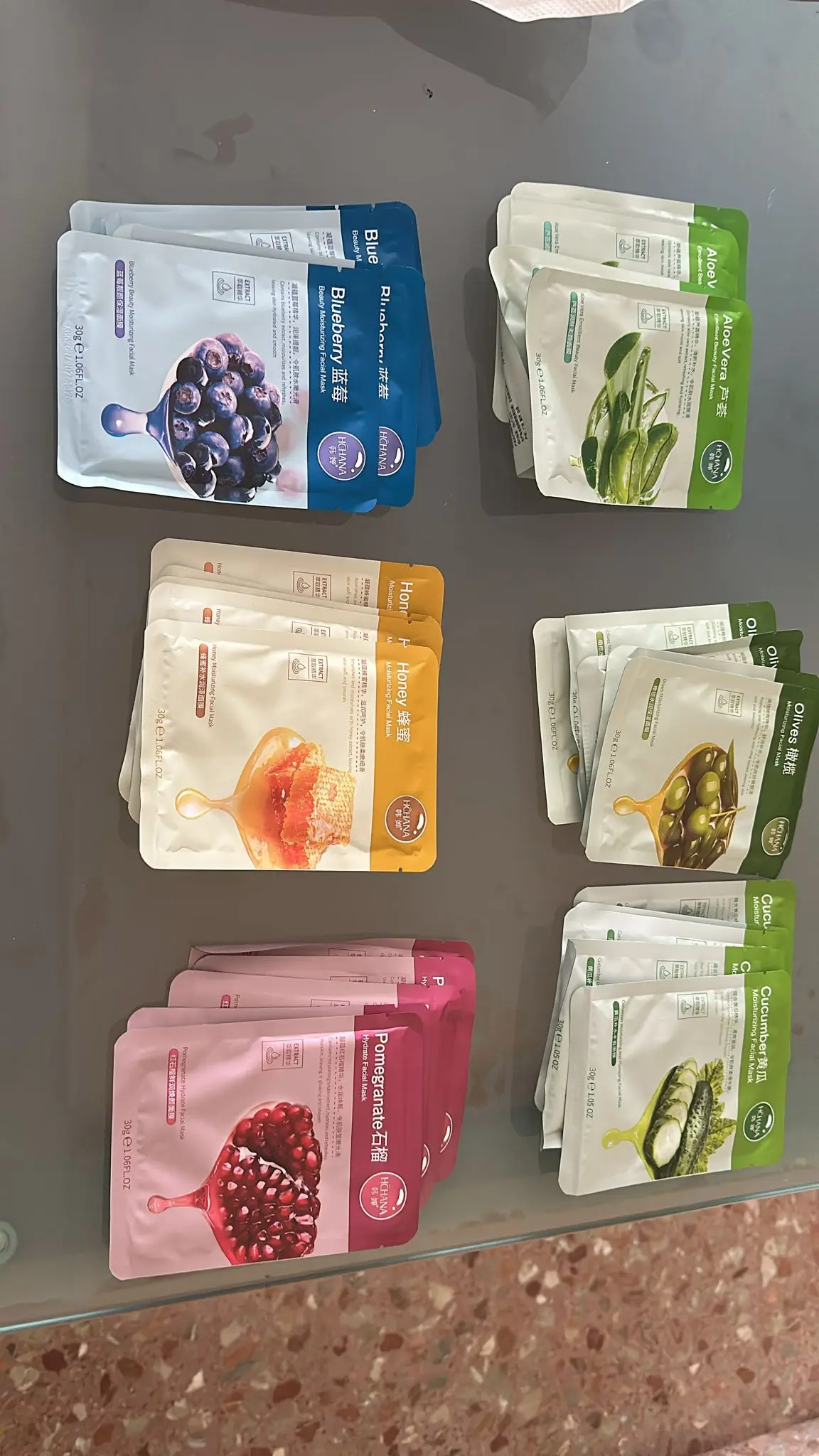 للأسف، وصلت فقط 5 أنواع من الأقنعة؛ لم يكن هناك نوع الخيار. كانت هناك 5 أنواع إجمالاً، كل منها يحتوي على 5 قطع، 25 قناعًا بدلاً من 30. إنه غير سار، لكنني لم أفتح نزاعًا. ليس من الواضح ما إذا كان خطأ المتجر أم خطأ التوصيل؛ كانت الحزمة مزيجًا. القناعات نفسها جيدة، رقيقة جدًا، تناسب الوجه بشكل جيد، وتؤدي وظيفتها بشكل ممتاز.