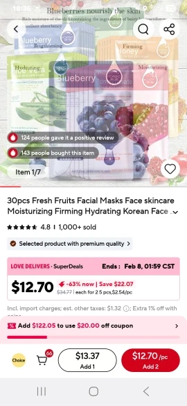 عادةً ما تستخدم زوجتي أقنعة الوجه هذه، ونحن نشتري دائمًا تلك المعروضة للبيع في المتاجر نظرًا لأن الأمر يشعر بالارتياح وترطيب الجلد (ليس الأمر أنك ستذهب إلى سبا باهظة الثمن للغاية) – فرق السعر سخيف. بالتأكيد سوف نشتري مرة أخرى.