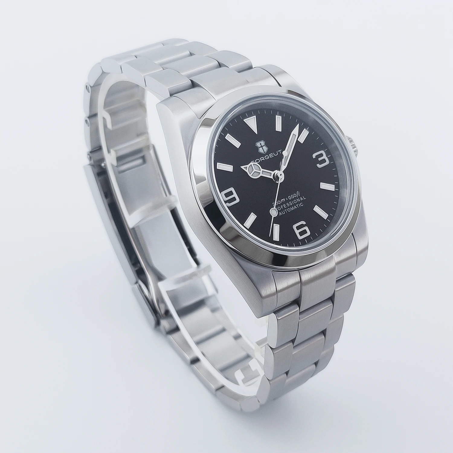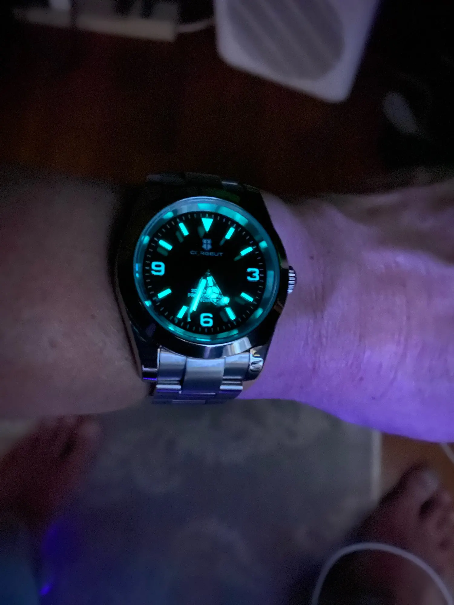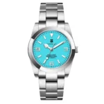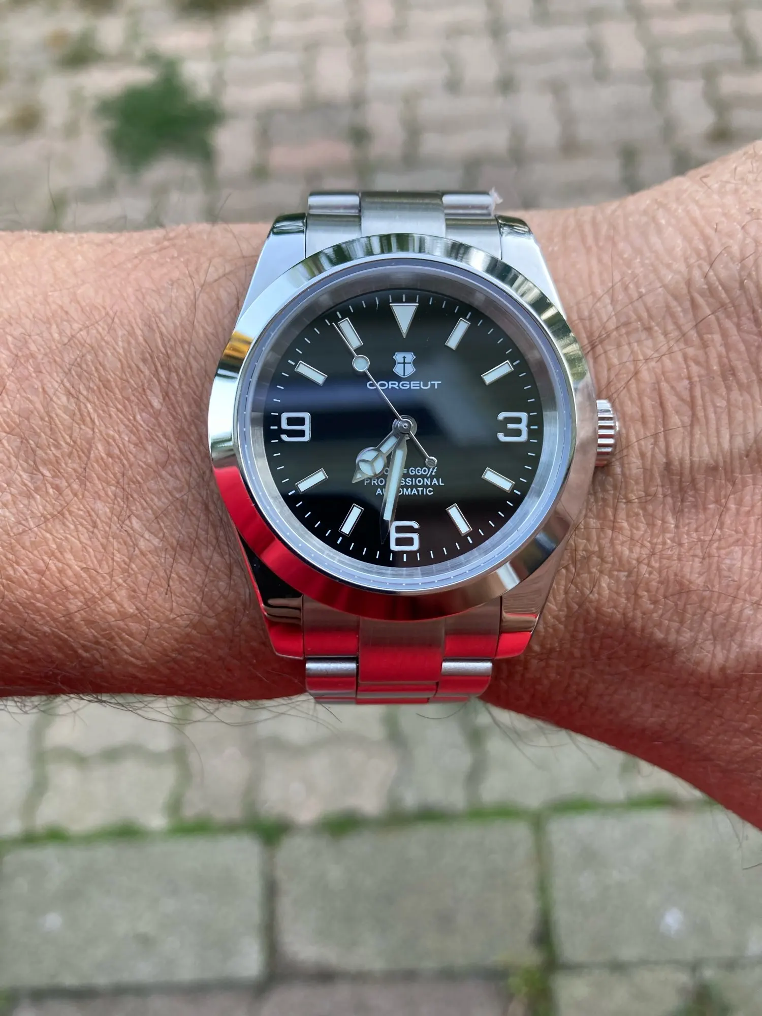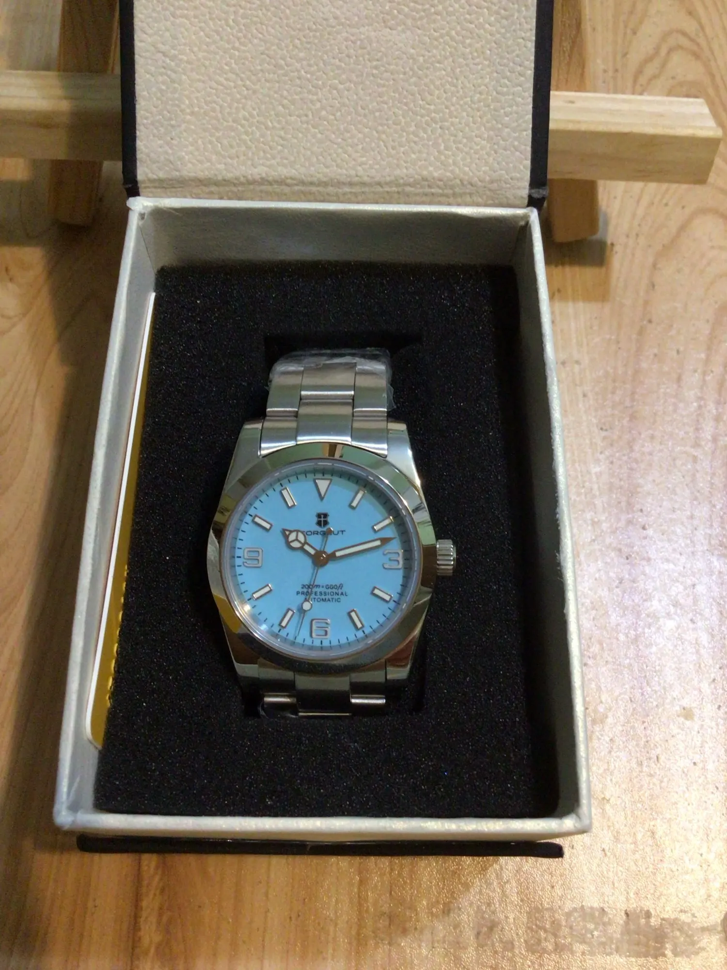 هذه الساعة فاقت توقعاتي. أردت ساعة “إكسبلورر” بحجم 39 ملم، تصميم مستوحى من الطراز الكلاسيكي مع المينا الأسود الأصلي. توجد خيارات عديدة في السوق، لكنني اخترت هذا المنتج تحديدًا بسعر 70 دولارًا أمريكيًا. في رأيي، هذا المنتج يتميز بأفضل المواصفات مقابل أفضل سعر. هيكل وسوار كاملان من الفولاذ المقاوم للصدأ 316L، وصلات صلبة ووصلات نهائية، مقاس دبوس لولبي، مشبك مطحون مع آلية قفل انزلاق سلسة، كريستال الياقوت، تاج لولبي وظهر علبة، ومقاومة للماء حتى عمق 200 متر. اخترت الطراز الأقل تكلفة 8215 بدلاً من NH35. القرص الأسود اللامع عميق وغني للغاية. فقط تحت عدسة مكبرة بقوة تكبير 30x تمكنت من اكتشاف عيوب في تعبئة اللومين على الأرقام. وإلا فإن الطباعة والمؤشرات الأخرى تكون في حالة ممتازة. السوار يتميز بحركة سلسة وقفل انزلاقي فائق السلاسة. أول تجربة لي وأعجبتني. الإضاءة جيدة، والشحن سريع، لكن الأرقام تتلاشى بسرعة. قد يكون هذا الأمر غير مهم بالنسبة للبعض، ولكنه قد يزعج البعض الآخر. قد يكون هناك اختلاف طفيف في درجة لمعان الساعة، حيث أن هيكلها مصقول بالكامل بينما السوار مطفي بالكامل، مما قد يظهر عدم تطابق بسيط عند نقاط التوصيل (lugs). لكنني ما زلت أعتقد أنه رائع وقد أحصل على آخر